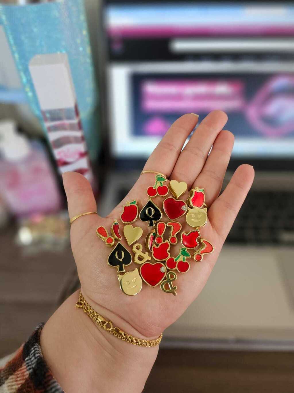 As peças são compostas em metal (bijuteria) na cor dourada.